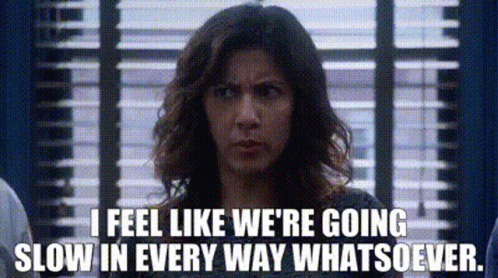 Rosa Diaz from Brooklyn Nine Nine expresses frustration, saying 'I feel like we're going slow in every way whatsoever.'