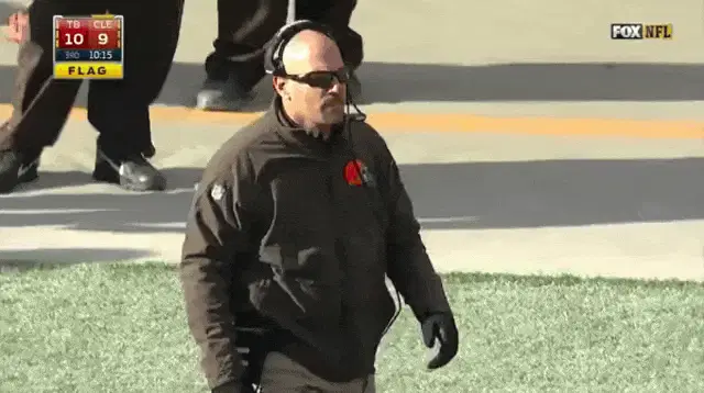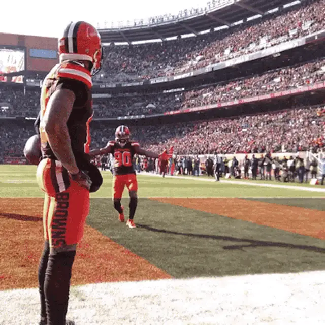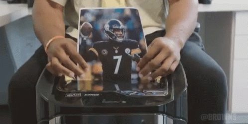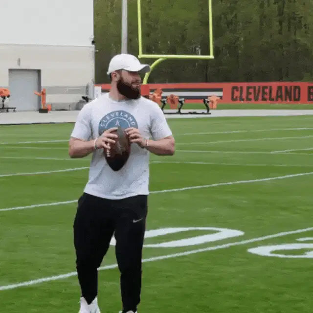 Myles Garrett shreds a picture of a football player in a number 7 jersey.