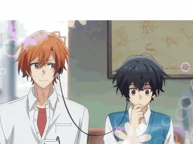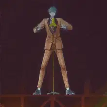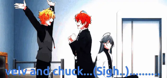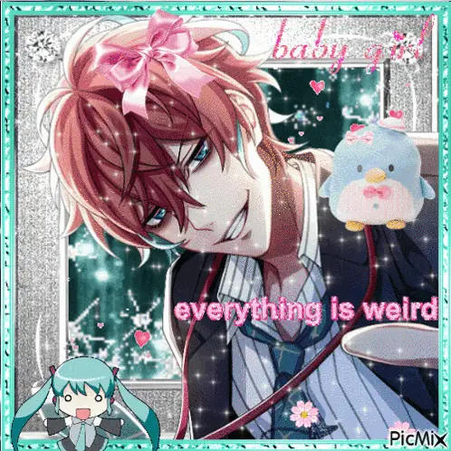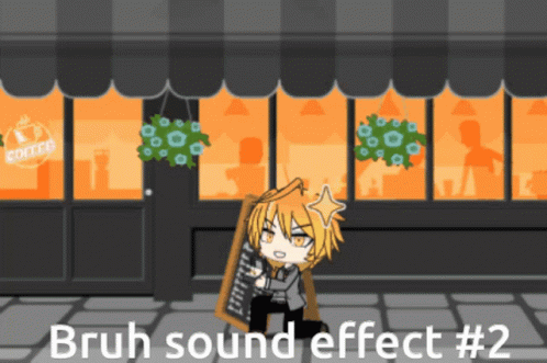 Hifumi Izanami from Hypnosis Mic reacts with a 'Bruh sound effect #2' in front of a cafe.