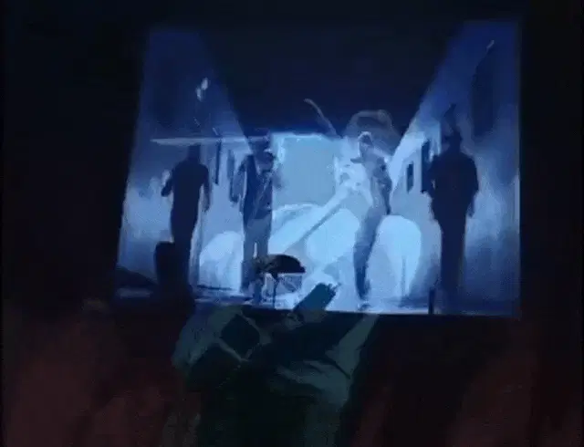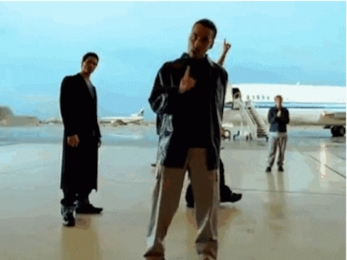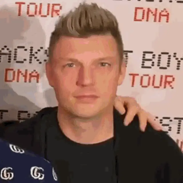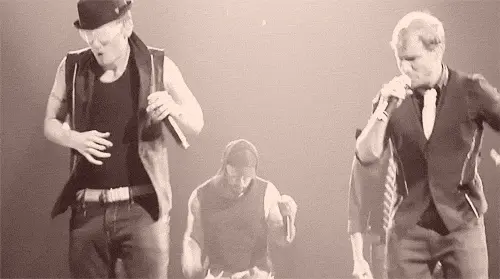 A Backstreet Boys member makes a 'Number 1' gesture, giving the middle finger, in a music video scene.