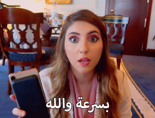 Anasala Family member, possibly أصالة or ميلامروة, reacts with surprise, holding a phone and saying 'By God, quickly!'