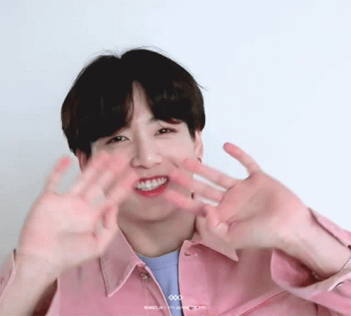 Jungkook from BTS, also known as Jeon Jungkook, waves and smiles warmly at the camera.