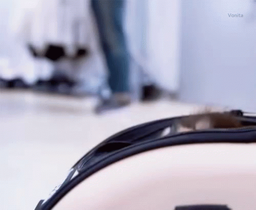 Adorable Pomeranian puppy, possibly BTS's Yeontan, peeking out of a bag, captivating with its fluffy charm.