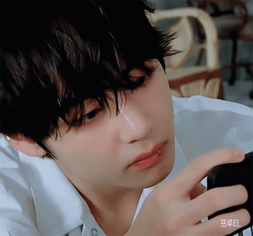 Kim Taehyung (BTS V) from Bangtan Boys in a close-up, looking intently with a lip piercing.