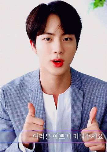 BTS member Jin gives a charming flying kiss to the camera, looking handsome in a suit.