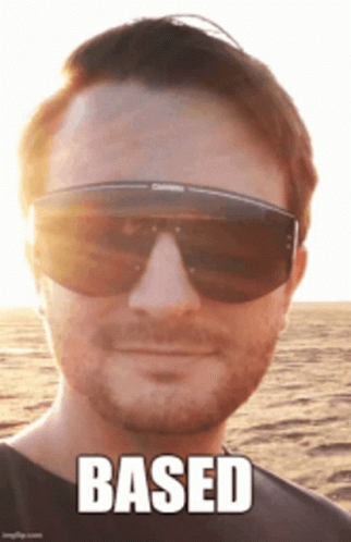 Jack Buckby in a selfie, wearing sunglasses with the word 'BASED' superimposed on the image.