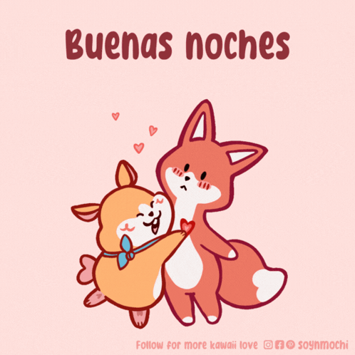 Two adorable cartoon foxes share a loving hug, wishing 'Good night' with hearts floating around them.