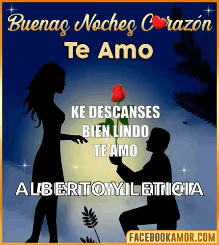 A man offers a rose to a woman, expressing 'Good Night My Love, I Love You, Rest Love'.