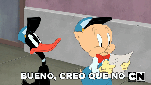 Daffy Duck (Lucas) reacts to Porky Pig reading, exclaiming "Well, I think it's not so bad."