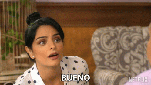 Aislinn Derbez as Elena De La Mora says "Bueno" and "Sí podría ser" in La Casa De Las Flores.