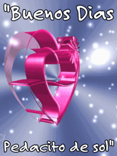 A sparkling pink heart animation with the Spanish greeting 'Buenos Dias Pedacito de Sol'.