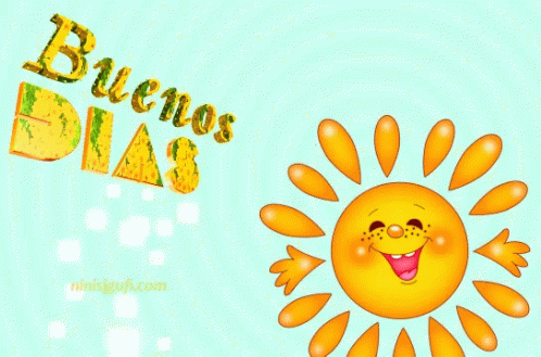 Animated 'Buenos Dias' greeting with a cheerful, smiling sun, perfect for a bright start to the day.