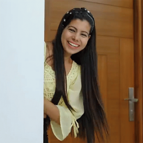 Sanjhalika Shokeen smiles and makes an 'OK' gesture while peeking from behind a wall.
