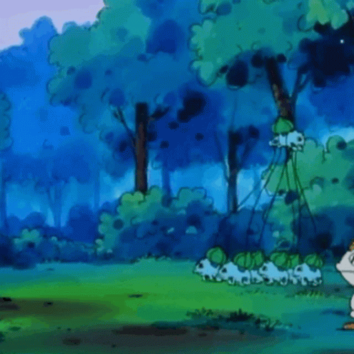 Team Rocket's James, Jesse, and Meowth observe a group of Bulbasaurs, one of which has a bandaid on its head.