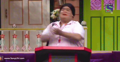 A comedian performs a lively 'Bumper Wahwah' act on The Kapil Sharma Show stage, entertaining the audience with expressive gestures.