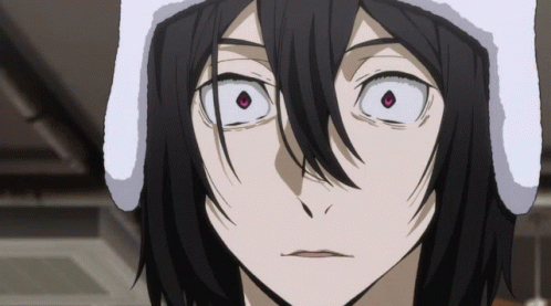 A close-up of Fyodor from Bungo Stray Dogs, wearing a white hat and giving a creepy smile.