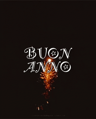 Spectacular fireworks display with 'Buon Anno' (Happy New Year) text, celebrating the New Year.