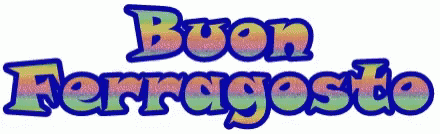 Colorful 'Buon Ferragosto' text displayed on a white background, celebrating the Italian holiday.