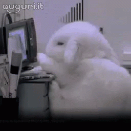 A fluffy white rabbit appears to be working diligently at a computer before a message advises 'Good work... but don't overdo it!'