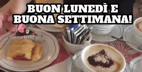 A delightful breakfast spread with cappuccinos and pastries, wishing everyone a Happy Monday and a good week.