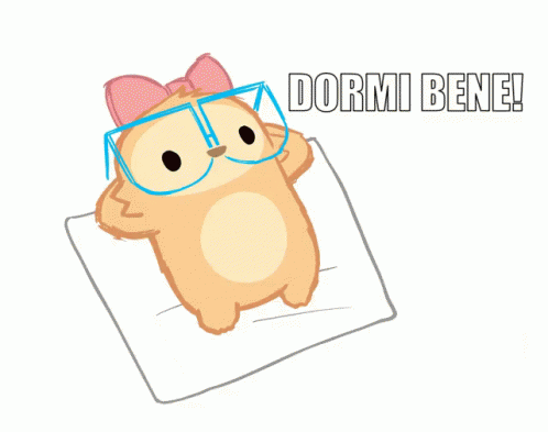 Cute cartoon animal with glasses sleeping soundly, wishing 'Dormi Bene' (Sleep Well) for sweet dreams.