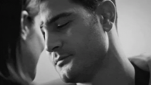 Burak Sevinç and Meriç Aral share a passionate kiss in a black and white, intimate scene.