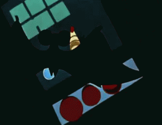 Animated character Buratino, known for his long nose and red outfit, stands in a dark setting.