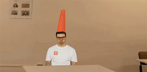 Mederi Corumbá wears a dunce cap and points to the word 'BURRO' on the wall, humorously identifying himself.
