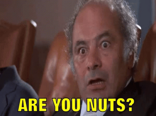 Burt Young as Paulie delivers the iconic line "Are You Nuts?" with a surprised expression.
