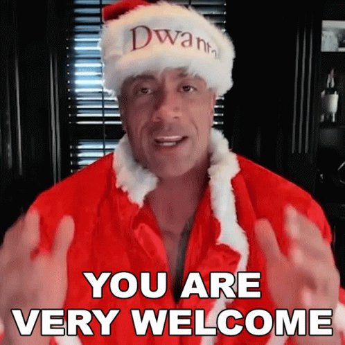 Dwayne Johnson, dressed as Dwanta Claus, delivers a festive message, saying 'You are very welcome'.