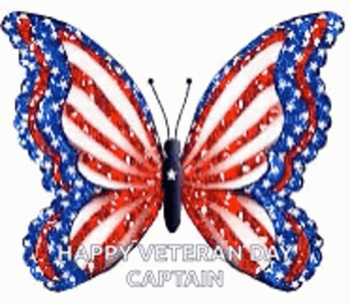 A sparkling American flag butterfly with 'Happy Veteran Day Captain' text.