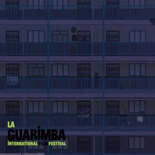 An animated airplane flies through a square tunnel, promoting La Guarimba International Film Festival with the title 'Bye Trip'.