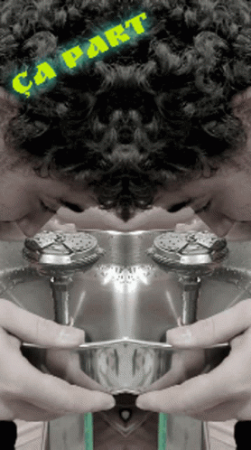 A person drinks water from a fountain, creating a mesmerizing mirrored reflection. Features the text 'ça PART'.