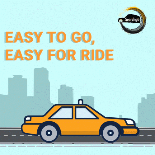 Searchgo advertisement featuring a yellow taxi and the slogan 'Easy to Go, Easy for Ride' for convenient travel.
