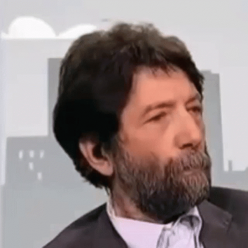 Massimo Cacciari, looking incensed and nervous, makes a funny face while reacting to something.