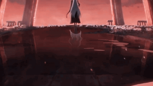 a woman in a white dress is standing in a pool of blood .