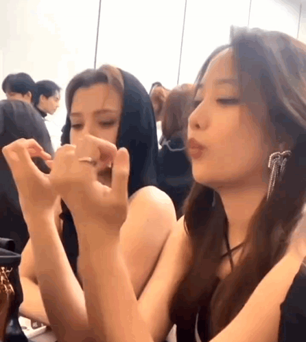 Becky Armstrong and Freen Sarocha share a playful moment, with Becky making hand gestures and Freen pouting.