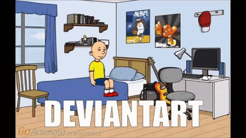 Caillou, depicted as an overweight adult in GoAnimate style, faces various situations, including being grounded, with 'DeviantArt' text overlaid.
