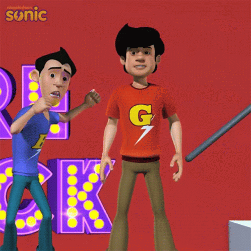 Battu carries a surprised Gattu in a funny moment from the Gattu Battu animated series on Nickelodeon Sonic.