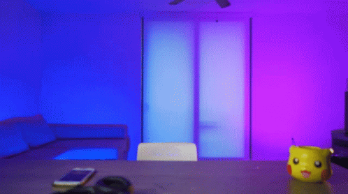 Caleb Sama's hand reaches in to grab a smartphone from a table next to a Pikachu mug.