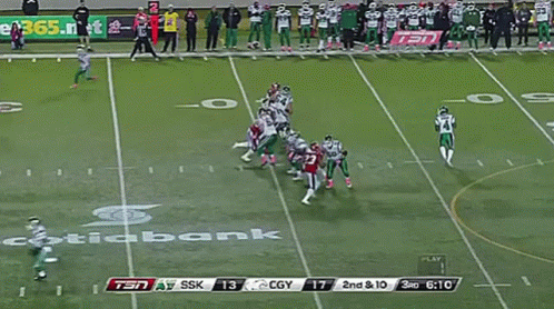 Charleston Hughes of the Calgary Stampeders makes a crucial interception during a CFL game against the Saskatchewan Roughriders.