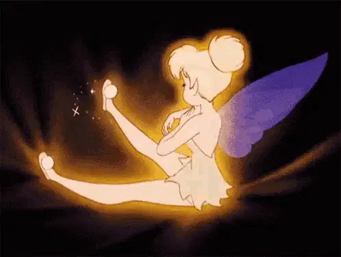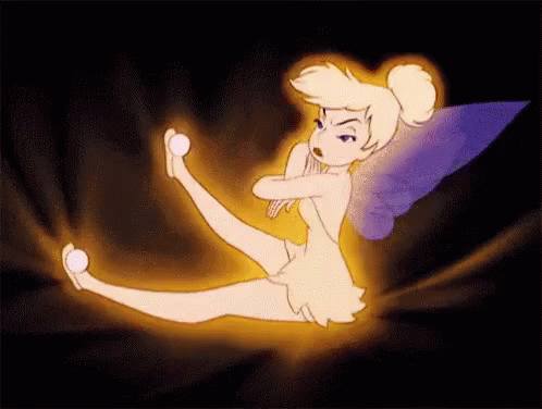 Tinkerbell, from Peter Pan, looks angry with crossed arms, asking 'What are you laughing at?'.
