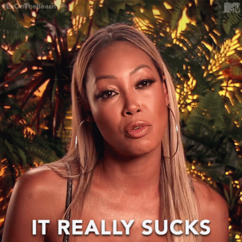 A woman expresses her strong dislike, stating 'It really sucks' in a tropical setting.