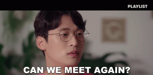 Oh Dong Min, wearing glasses, asks "Can We Meet Again?" in a scene from My Fuxxxxx Romance.