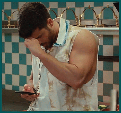 Can Yaman, portraying Ozgur Atasoy, is seen looking at his smartphone in a kitchen setting.