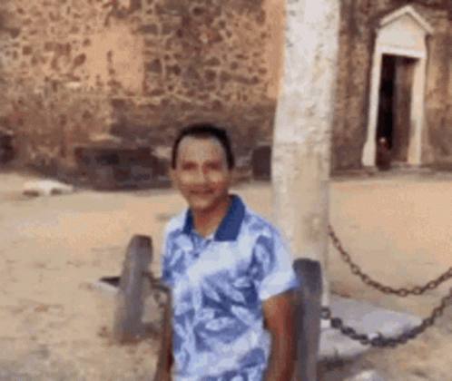 Canddy walks and smiles in a large, sandy square with old buildings in the background.