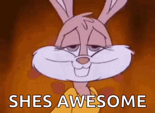 Canddy, the cartoon rabbit, smiles sweetly with the text 'She's Awesome' displayed below her.