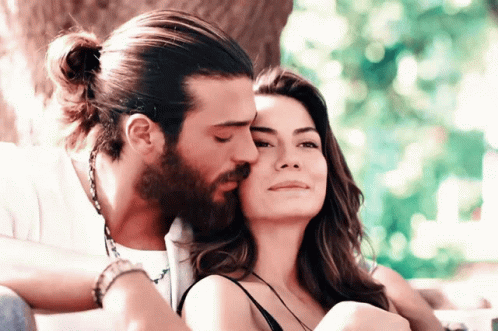 Canem and Sanem share a tender, romantic moment as Canem kisses Sanem's forehead.