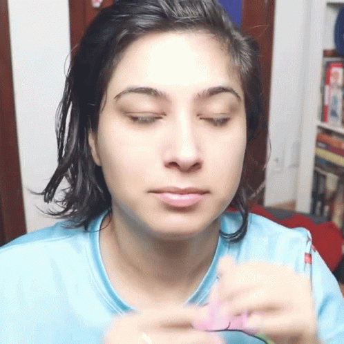 Sandra Landeiro expresses extreme tiredness, covering her face then making an exaggerated tired expression.