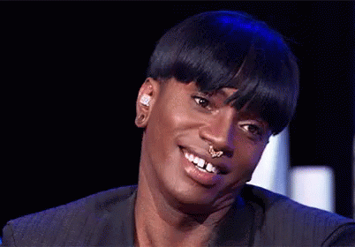 A woman with a nose ring looks up with an annoyed expression, then shifts to a slight, exasperated smile.